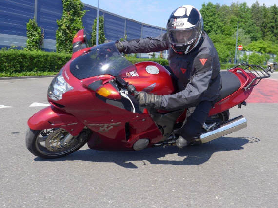 Da ich das Areal des Strassenverkehrsamtes mieten muss, brauche ich mindestens 6 zahlende TN, um den Kurs durchzuführen. Meistens findet er vor dem WB-Kurs in Interlaken statt, wobei Oster- bzw. Pfingstsamstag bisher eher ein Handicap war. Aufgrund der katastrophalen Wettersituation um den 20. April musste der Kurs in Interlaken kurzfristig abgesagt werden. Als ich dann eine Woche vor Pfingstsamstag erstmals die srf-meteo konsultierte, erlitt ich einen Schock – ging aber ohne Notarzt über die Bühne – im Hinblick auf das KT2-Programm: Nach dem KT1-Kurs, in welchem es in erster Linie um eine saubere Kurvenfahrtechnik (Kurvenlinie, Blicktechnik und Geschwindigkeitsgestaltung) geht, sollten im Kurs 2 die fahrer- und maschinentechnischen Reserven erkundet werden. Nasse Fahrbahn ist da ein brutaler Spielverderber, im Gegensatz zum KT1, wo oft die Teilnehmenden im Regen schräger gefahren sind als je zuvor.