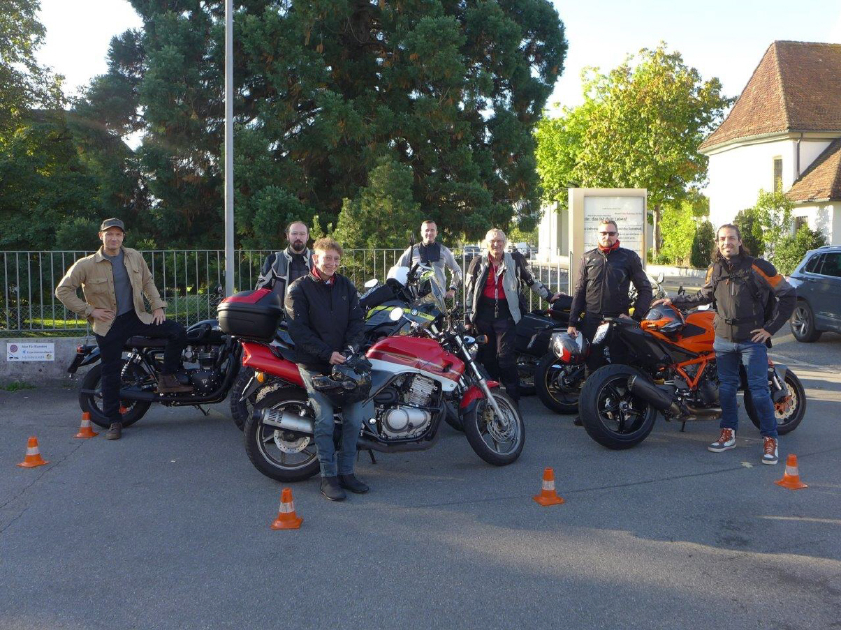 Mein Kurventechnik-Kurs 2, für den ich extra das Gelände des Strassenverkehrsamtes in Zug miete, war schnell mit 8 Personen ausgebucht. Wie in jedem Jahr trafen wir uns in Steinhausen im Café Nussbaumer. Bei den Teilnehmenden handelte es sich ausnahmsweise aus «Wiederholungstätern», wobei der Kurs bei einigen schon ein paar Jahre zurücklagen, wie auch die Führerprüfung.