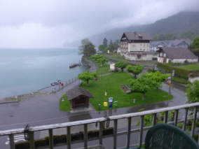 Bei der Besammlung in der Waldegg war die Welt noch in Ordnung: Bei schönem Wetter trafen alle TN rechtzeitig ein, so dass wir planmässig losfahren konnten. In Muri stiess noch Fritz zur Gruppe. Die Strecke kennen alle bereits, denn ich fahre mit kleinen Variationen immer etwa dieselbe Strecke, über Hitzkirch, Beromünster, Sempach nach Malters und die Rengg ins Entlebuch. In Wiggen legten wir einen Zwischen-, auf dem Schallenberg einen Fotohalt ein und in Thun bogen wir in die Strasse dem See entlang ab nach Interlaken. Den letzten Part legten wir auf der Autobahn zurück, wo wir vor Bönigen noch auftankten. Bei unserem Eintreffen im Oberländerhof in Bönigen war es gegen 20 Uhr. Immerhin brachten wir diese Fahrt im Trockenen hinter uns ...