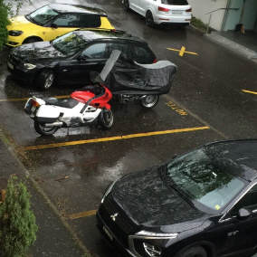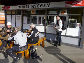 Nach dem Mittagessen war es endlich trocken: So konnten wir noch verschiedene Kurvenübungen machen, die (natürlich) alle schon kannten ... So richtig spannend waren dann die Ausfahrten, das Fahren im Realverkehr, wo wir die Gruppe aufteilten und ich als Co-Instruktor im Einsatz stand. Schliesslich fuhren wir wieder zurück, denn schliesslich lag uns noch eine lange, aber auch spannende Rückfahrt bevor. |
