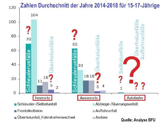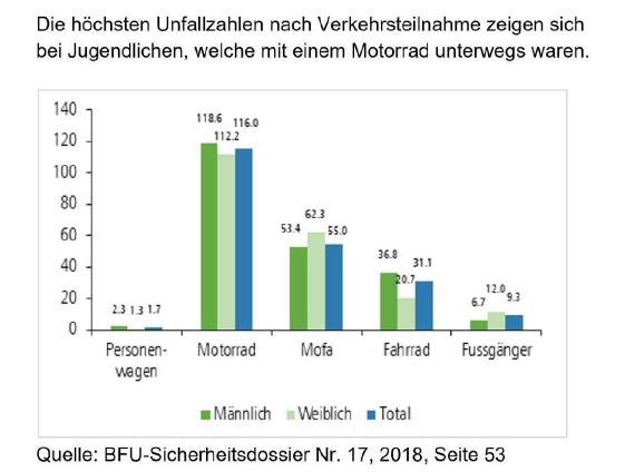 16-Jährige sind in einem sehr gefährlichen Alter: Die Entwicklung ist sehr unterschiedlich, während einige noch richtige Kinder sind, gibt es andere, die schon sehr viel Verantwortung in der Familie, im Verein, in ihrer Lebenslaufbahn übernehmen. Aber alle haben sie etwas gemeinsam: Sie machen oft Dinge nur darum, um in den Augen von anderen gut dazustehen, ohne an die Folgen ihres Tuns zu denken! Aufgrund ihrer bisherigen Lebenserfahrung haben sie noch keine Ahnung, was im Verkehr alles passieren kann. Sie beginnen erst zu denken, wenn etwas schief gelaufen ist! Diese Unerfahrenheit im Verkehr zusammen mit dem kindlichen Gehabe (vor allem Männer!) ist extrem gefährlich.