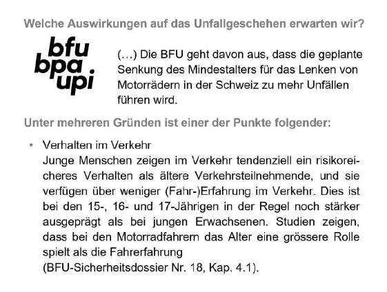 Zusammenzug: Die Bedenken d. bfu zu den Neuerungen |