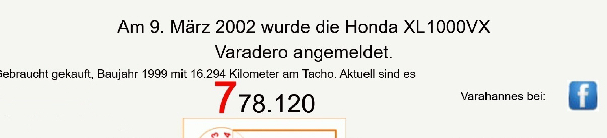 Diese 600'000 wird er bald auch mit der Africa Twin erreichen, während es bei der Varadero schon wieder fast 200'000 km mehr geworden sind ...