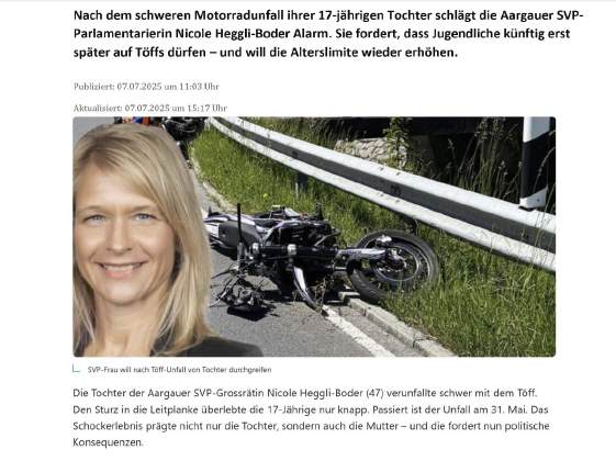 Sie hatten noch Glück, ihre Tochter überlebte knapp den Töffunfall: «Klixk»e auf obiges Bild zum Blick-Bericht. Weniger Glück hatte der ebenfalls 17jährige Jugendliche an der Hulftegg, der auf der Unglückstelle verstarb. Bericht als PDF [1'292 KB]