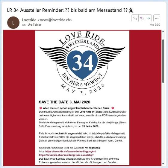 Sonntag, 3.Mai 2026 LOVERIDE 34 |
