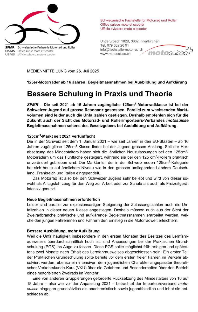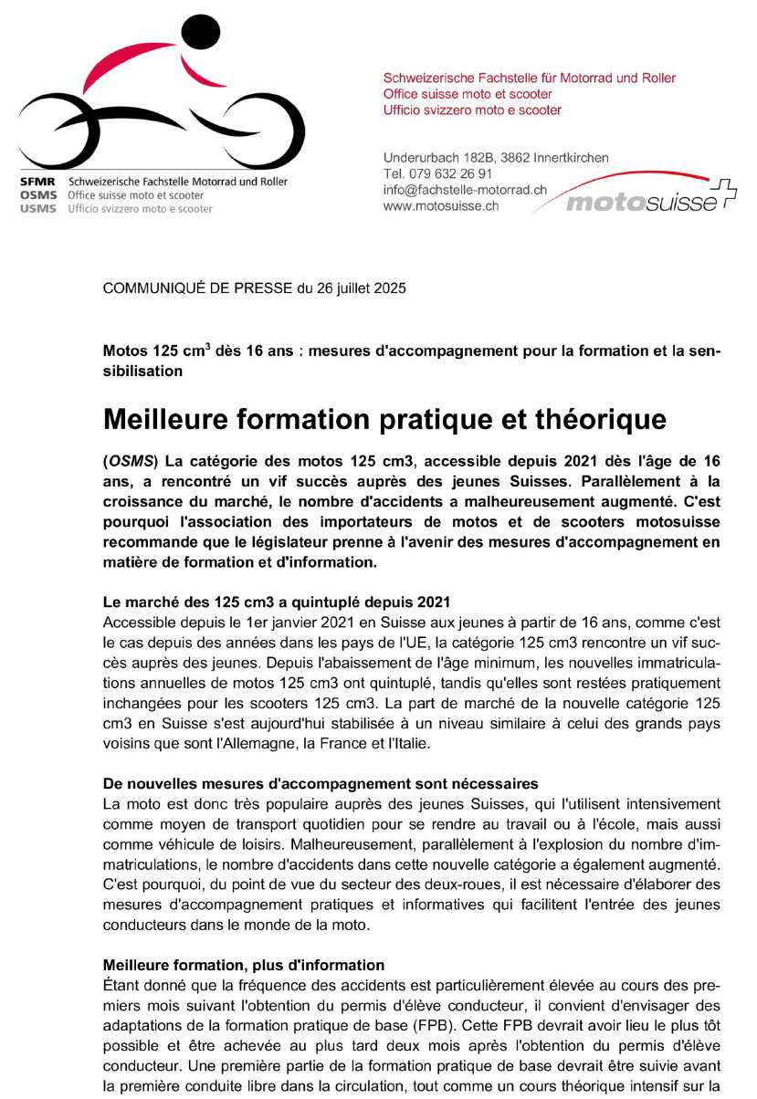 Pressebulletin vom 26.7.2025 von «moto suisse» |