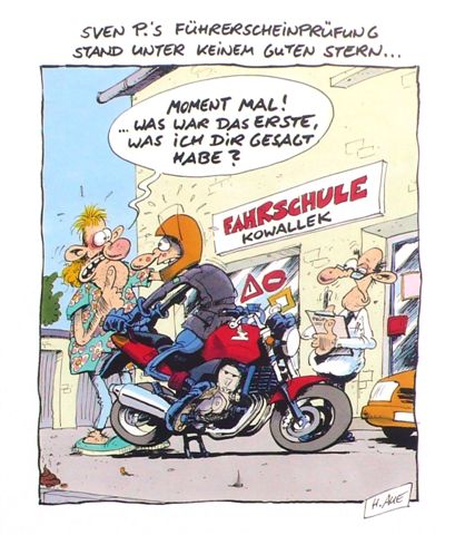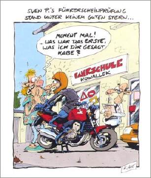 Nach der Ausbildung in meiner Töff-Fahrschule ist die Führerprüfung keine Hexerei mehr: Gut ausgebildet schüttelt man die Prüfungsanforderungen locker aus dem Ärmel ... Das tönt vielleicht nach «geringen Prüfungsanforderungen»? Nein, mitnichten - sondern nach hohen Ausbildungsanforderungen: Wer die Ausbildungsanforderungen an der Tramstrasse 100 erfüllt, in dem er sich von A bis Z bis und mit Prüfungsvorbereitung ausbilden lässt, darf ruhigen Gewissens an die Prüfung gehen und erwarten, dass er/sie sie im ersten Anlauf besteht. Dies gelingt fast ausnahmslos, negative Prüfungen in Begleitung des Fahrlehrers sind eine absolute Seltenheit. Begleitet wird aber nur, sofern sich der Kunde, die Kundin umfassend ausbilden liess. |