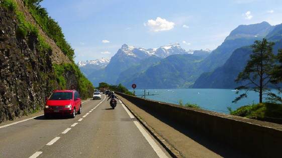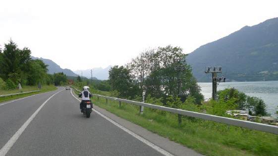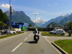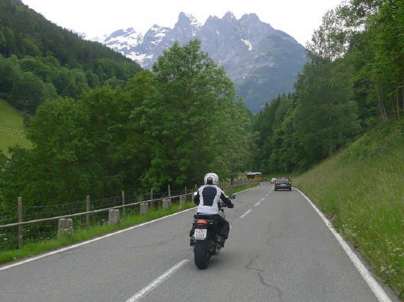 Nach einem Kaffee gings über den Pass (1952 m ü.M.), die Strecke hinunter zum Urnerboden und später nach Linthal. Die Strasse ist über weite Strecken in sehr schlechtem Zustand, teilweise repariert, aber vom vielen Verkehr ausgefahren. Vorsicht ist die Mutter der Porzellankiste auf der sonst sehr schönen Abfahrt. Ein neuer Tunnel ersetzt die alte Felsgalerie, die damals am Wochenende mit Lichtsignalanlage im Einbahnverkehr befahren wurde. Ebenfalls ist die Strecke von Linthal nach Glarus über weite Strecken ausgebaut, die engen Ortsdurchfahrten gehören der Vergangenheit an. Auch hier ist es nicht ersichtlich, weshalb man hier von der Ausnahme, dass auf gut ausgebauten Ausserortsstrecken das Tempo auf 100 erhöht werden darf, nicht Gebrauch macht. Zwar hält sich kaum jemand an die Beschränkung, vor allem nicht die einheimischen GL-Fahrer, aber man ist ja nirgends gefeit gegen die überfallartigen Fallen, die vorwiegend an abfallenden, gut ausgebauten Strecken angelegt werden, eine erspriessliche Einnahmequelle. So kamen wir schliesslich an der Pforte des Glarnerlandes an und bogen auf die Autobahn ein. Ein langer Tag ging seinem Ende entgegen. Im Gegensatz zu Österreich, welches über die Pfingsttage ein schwarzes Wochenende mit vielen Verkehrstoten erlebte, ging es in der Schweiz relativ ruhig über die Runden, auch wenn es natürlich für die Betroffenen hart ist.