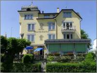 Unser Zimmer hatten wir im zweiten Stock, Nr. 12 wie auch schon, zur Strassenseite. Vis-à-vis war die ganze Familie am Grillieren im Garten draussen. Erst mal raus aus den heissen Töff-Klamotten und unter die Dusche – welche Wohltat. Während es im Sustenpass schon ganz schön kühl war, spürte man hier die Hitze wieder in ihrer vollen Pracht. Wegen des Lüftchens zogen wir es aber vor, im Innern des Hauses zu dinieren, in der Bella Vista-Stube. Da draussen war ganz viel los, Kinder spielten, Touristen flanierten und von Zeit zu Zeit kam ein Bus, der sich entleerte und gleich wieder füllte. Auch wir hatten eine Gästekarte bekommen, die uns eine freie Benützung der Busse in und um Interlaken bot, eine gute Idee. So bleiben Auto und Töff stehen und die Gäste konnten sich trotzdem frei bewegen. Die Speisekarte bot uns viele Genüsslichkeiten an, unsere Wahl beschäftigte uns und die Küche dann auch einen halben Abend lang. Wir waren am Schluss so satt und so müde, denn die Kilometer bei diesen heissen Temperaturen hatten ihre Spuren hinterlassen, so dass wir uns sogleich ins Zimmer zurückzogen und gleich auch vom Schlaf übermannt wurden.