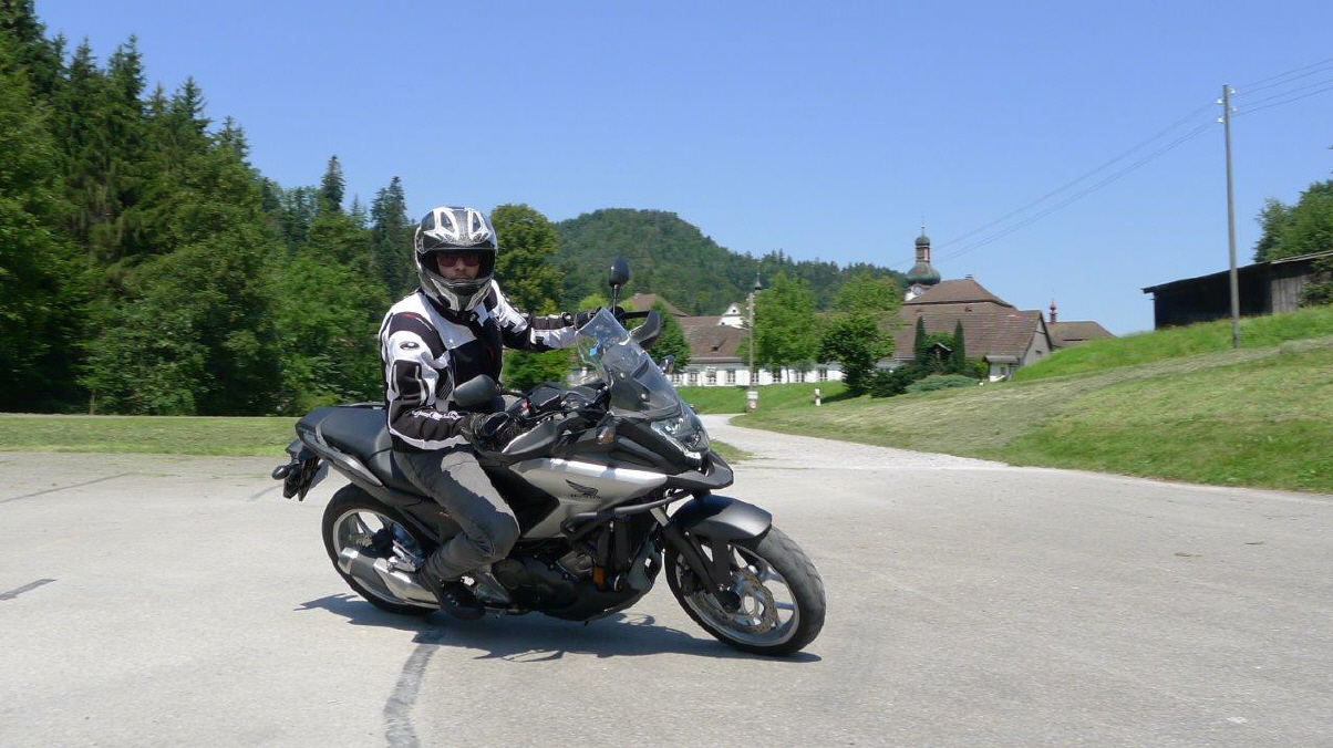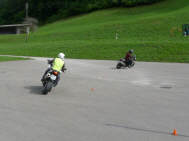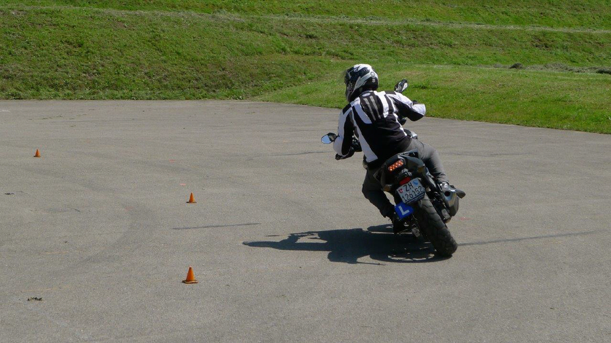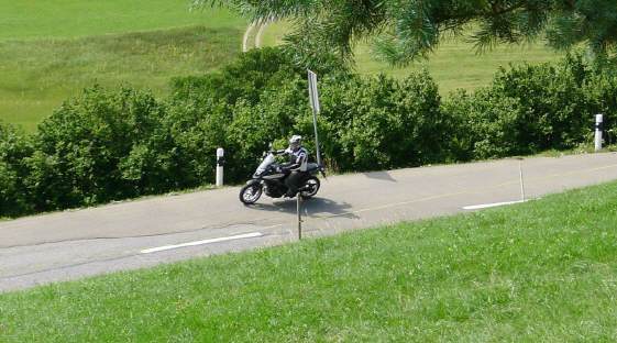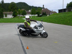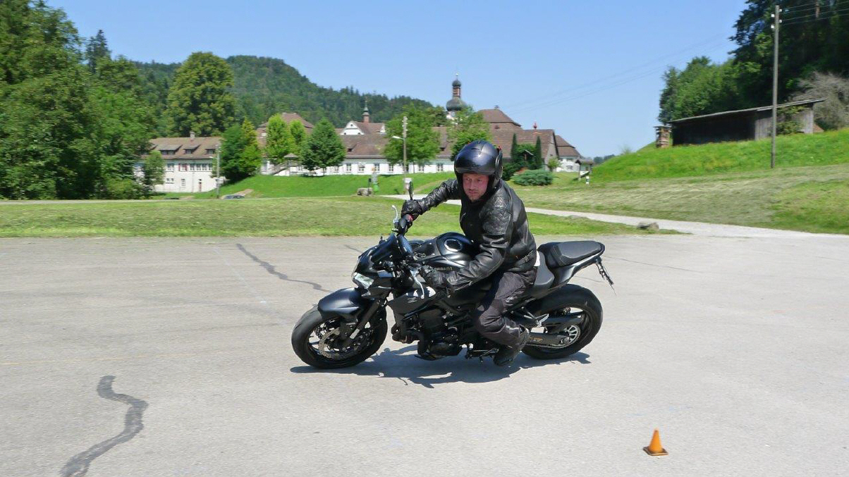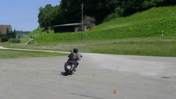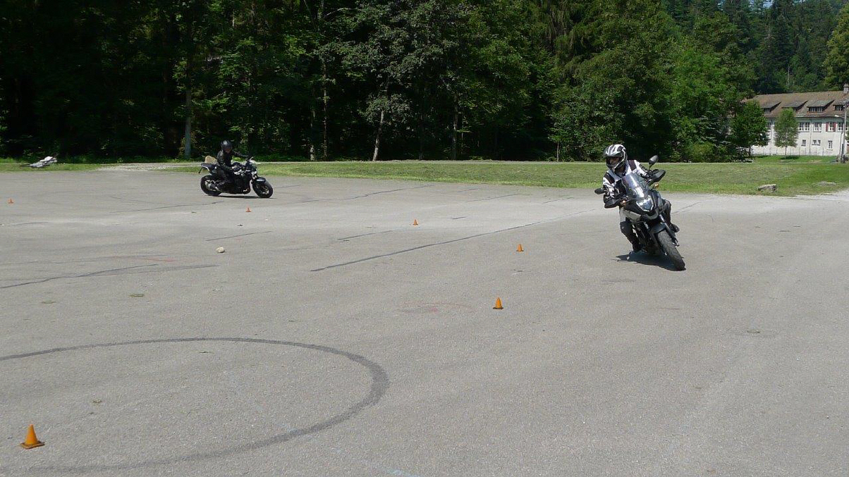 Im Corona-Jahr ist alles etwas anders: Da ich erst am 11.Mai 2020 meine Arbeit aufnehmen durfte, waren die ersten Fahrschüler erst Ende Juli so weit, den Kurventechnik-Kurs als dritten Teil ihrer Obligatorischen Grundschulung zu besuchen. Neben den beiden Fahrschülern stiess auch noch eine Weiterbildungskandidatin dazu, so konnte er zu dritt stattfinden. Im Bild: Teilnehmer/in ganz rechts und ganz links.