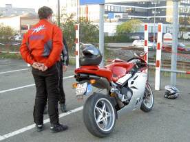 Das GRÖSSTE Motorrad auf dem Markt, ein 370 kg-Brocken mit 140 PS! Der Kandidat, nach missratener Manöverprüfung sagte, dass er beweisen will, dass man auch mit einer solchen Maschine die Prüfung bestehen kann. Er hatte gerade mal das Gegenteil beiwiesen ... Mhr dazu folgt!