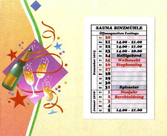 Sauna Binzmühle: Neue Öffnungszeiten |