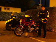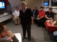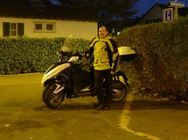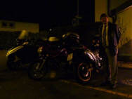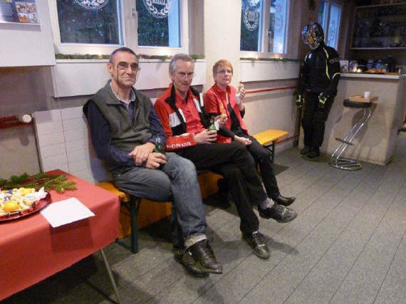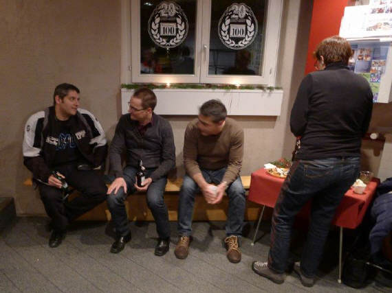 Der erste Abend wurde bereits von 22 (+ ¼) Personen besucht: Ganz überraschend ohne Ankündigung tauchte Roland und Manu mit ihrer kleinen Tochter (4 Monate alt) auf und dominierten das erste Geschehen. Niemand kann sich einem so kleinen, herzigen Geschöpf entziehen! Im Laufe des Abends tauchten dann mehr und mehr Leute auf, vor allem ehemalige Fahrschüler und Teilnehmer an den Veranstaltungen. Drei der Teilnehmenden kamen mit dem Töff: Alain, der mit seinem neuen 300er-Dreirad-Roller das ganze Jahr fährt, sowie Claudio mit meiner CB500 S, die bei ihm überwintert und Peter, mein Zürich-Versicherungsberater, dessen Auto von der Frau bewegt wird, also nicht ganz freiwillig mit seiner 700er-Transalp. Sigrid und Milly verpflegten die Anwesenden mit Speis und Trank und kurz nach 7 Uhr traf dann auch Walter, der «Mann des Tages» ein: Er hatte sich mit einer Media-Schau als Grundlage für seinen mündlich Vortrag vorbereitet.
