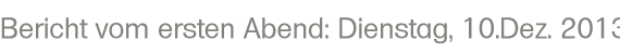 Über den Pfeil oben rechts «Weiter» zu «Bericht vom zweiten Abend: Mittwoch, 11.Dez. 2013» |
