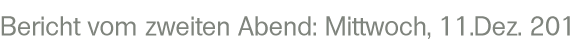 Über den Pfeil oben links «Zurück» zu «Bericht vom ersten Abend: Dienstag, 10.Dez. 2013» |
