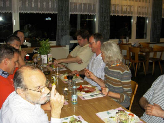 Auf Umwegen landeten wir so im Rest. Raten. Da ich von Peter Doering bereits telefonisch informiert worden war, dass das Rest. Gottschalkenberg geschlossen war, gab ich dies per SMS an Joachim weiter. Er hatte mit seiner schnellen Truppe den Umweg über Oberägeri gemacht, fuhr dann nach Finstersee, wo er auf dieselbe Tafel traf wie wir: Sein Weg führte damit nochmals nach Oberägeri, von wo er den Ratenpass ansteuerte und es wurde fast halb 10 Uhr, bis sie dort eintrafen. Inzwischen hatten wir mit dem Wirt vereinbart, da er das gesamte Küchenpersonal bereits in den Feierabend geschickt hatte, dass wir wenigstens von der «Kalten Küche» versorgt wurden: Unsere Gruppe belegte glaub ich jede einzelne Position darauf im Minimum ein Mal, waren es doch immerhin 14 Personen und 11 Maschinen an diesem Abend. |