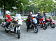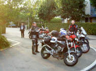 Alles begann nach einer rassigen Durchfahrt durch die Stadt Zürich auf der Westtangente bis zur Autobahnausfahrt Thalwil, wo wir uns auf dem 3M-Parkplatz aufteilten. Stürmi nahm die «stürmerische» Clique, ich fuhr mit einem Damenteam die bekannte Route in den Horgenerberg, über Hirzel nach Finstersee, wo wir auf ein «FAHRVERBOTS»-Schild trafen ! Ein bisschen war ich ja vorgewarnt, da mich ein SMS bereits auf die prekäre Situation nach den Unwettern aufmerksam gemacht hatte. |