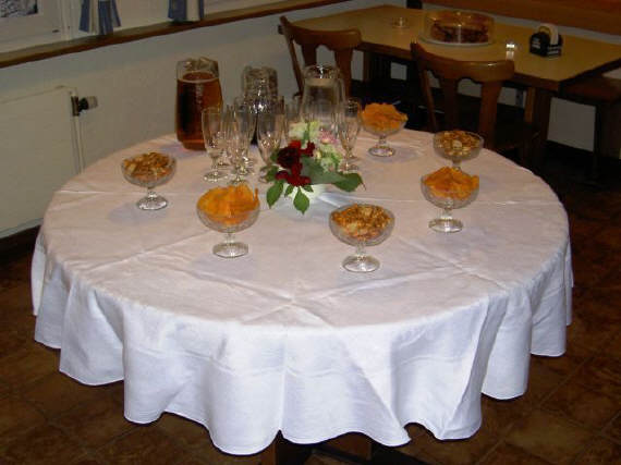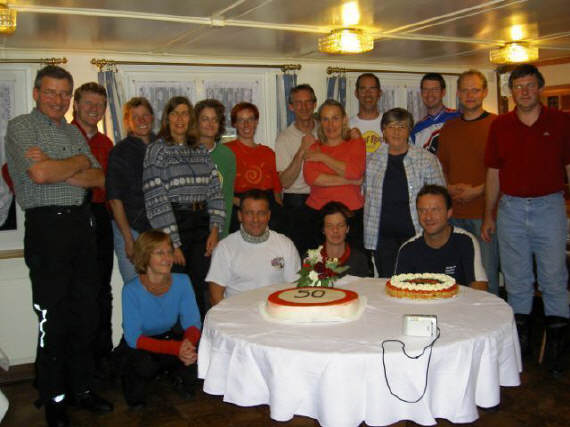 Dann folgte das Essen, Schlag auf Schlag: Inzwischen hatte es sich herumgesprochen, was denn der besondere Anlass war heute: Am Vorabend jährte sich der Geburtstags des «Chefs» zum 50.Mal, was der Grund für den festlichen Rahmen war. Gemütlich assen wir uns durch die Gänge und der Dessert war der Höhepunkt, eine Riesentorte mit 35 Zentimetern Durchmesser.