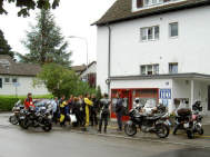 Wer dem Aufruf folgte, wurde kaum enttäuscht, erwartet uns doch bereits beim Entrée ein Apéro. Die Strecke war zwar durchgehend feucht oder nass, aber ich konnte immer mit offenem Visier fahren, so gering war der Niederschlag. |