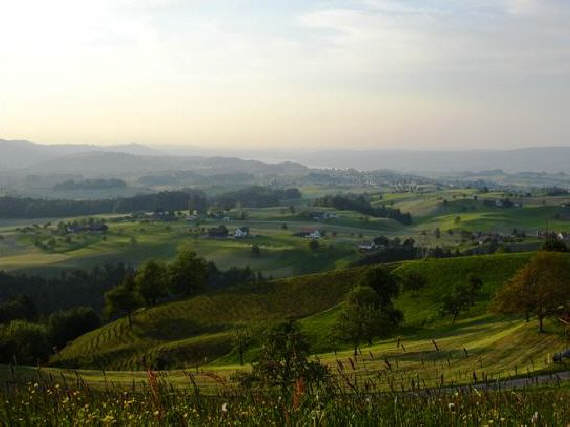 Die Fahrt zum Gottschalkenberg über den Horgener Berg nach Hirzel, über Finstersee und dann die schmale Waldstrecke ist mit dem Töff ein Genuss - für Autos ist es wegen der schmalen Strasse schon fast ein Stress. Da noch etwas Zeit blieb, hielten wir unterwegs an und genossen die Aussicht auf die Hügellandschaft um die Hüttwilerseen und auf den unteren und oberen Zürichsee.