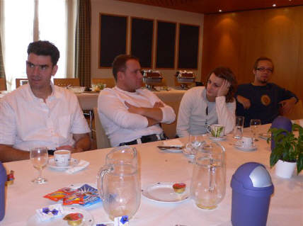 Ab da gings dann brutal runter, eine herrliche Passtrasse nach Kriens, von dort aus in Richtung Alpnachstad und dann über ein paar Hinterstrassen schliesslich nach Flüeli, von wo aus eine schmale Alpstrasse in die Höhe führte, auf die Älggi-Alp, wo uns der (verspätete) Mittagstisch erwarte. Die Überraschung war gelungen und einige schwitzten ganz schön, vor allem die kleinen Motoren, bis sie auf dem Berg ankamen. |