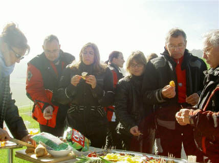 Von Knonau fuhren wir Richtung Innerschweiz: Über viele kleine Strässchen fuhren wir ins Entlebuech und über Malters nach Schwarzenberg, wo es an einem wunderbaren Aussichtspunkt etwa eine Stunde nach dem Start eine Apéro-Pause gab. Maja Vogel, die jüngere Schwester von Urs, erwarte die Gesellschaft und verwöhnte uns mit einer herrlichen Auswahl verschiedener Köstlichkeiten. |