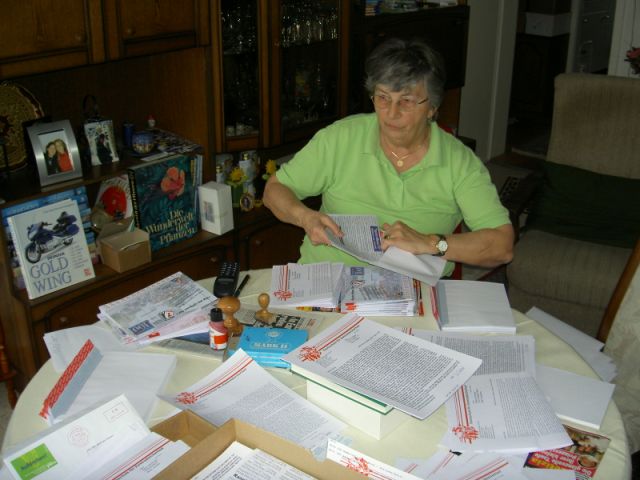 Milly Peter beim Einpacken der Kundenpost. Über 1900 Couverts - Namen, die Erinnerungen wecken!