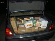 Nichts für den Töff: Der gesamte Kofferraum des Volvo 960 ist gestopfen voll mit Schachteln, Taschen.