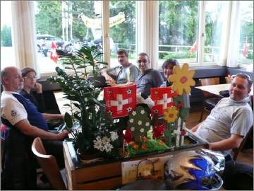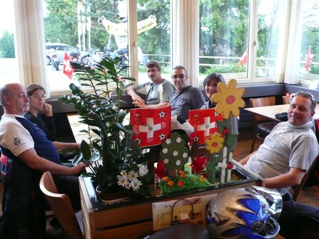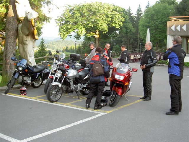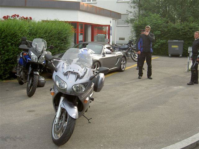 Die erste Gruppe war noch kaum abgestiegen, als die zweite heranrollte: Von der Sonne stark geblendet bogen wir in den fast leeren Parkplatz ein - in der Schweiz schauen die Leute die EURO'08 zuhause wohl...