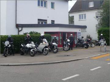 Unsere Donnerstagsausfahrt vom 12. August verlief also trocken: Zwar trafen wir teilweise im Wald noch feuchte Fahrbahnen, zum Teil trafen wir auf in die Strasse geschwmmtes Kies, was verschiedene Fahrer zu kleineren Rutschpartien, geliebte und ungeliebte, verleitete... Doch insgesamt war es eine zwar kühle, aber durchaus schöne Ausfahrt. Der Regen ereilte uns dann auf dem Heimweg: In Regensdorf gingen wir noch tanken, da ich nicht auf Reserve auf den Westring einbiegen wollte. In der Autobahneinfahrt Affoltern zum Gubristtunnel negann es zu regnen, zwischen der Brunau und Thalwil sogar ziemlich heftig. Dazwischen bewegten wir uns vorwiegend in Tunnels, was bei diesem Wetter nur von Nutzen sein konnte. Was noch zu bemerken wäre: Dominik stellte fest, dass Arthur da war. Wir stellten fest, dass Arthur diesmal eine Strecke fand, die NICHT über Bassersdorf ging. Und zwei Mal durften wir drehen - was ja jedem Tourguide mal passieren kann... Diesmal war ICH für einmal nicht falsch gefahren, weil ich ja der Gruppe nur hinterherfuhr. Und der L-Fahrer Richi schlug sich tapfer, ich konnte ihn kaum abschütteln: Er «musste» meine Kurvenlinie, nicht aber immer meine «Kurvengeschwindigkeit» kopieren! |