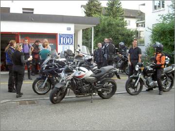 Nachdem sich Walter frühzeitig abgemeldet hat, fällt nun auch Arthur aus: Er wurde von einem 125er-Fahrer auf der Klausenpass-Strasse abgeschossen! Dieser war in einer Rechtskurve schon sehr nahe an die Mitte geraten und griff in die Bremse, als er plötzlich Arthur erblickte. Mit weit geöffneten Augen fuhr er geradeaus in Arthurs grosse BMW, welcher seinerseits von der Strasse abgetrieben wurde. Neben Prellungen erlitt er eine Schnittverletzung am Fuss, welcher nun in einem Spezialschuh steckt und ans Töfffahren ist momentan nicht zu denken. Auf meinen Hilferuf an meine Tourguides hat sich Mark gemeldet und Oliver hat sich abgemeldet. Ich hoffe, dass es vielleicht noch mehr gibt, die für die Ausfahrt zur Verfügung stehen... |