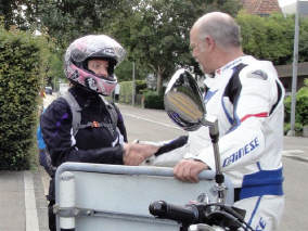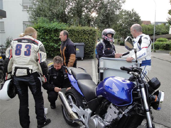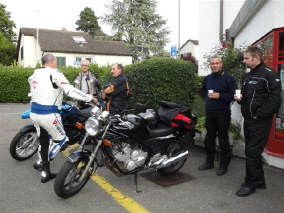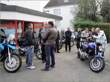 Ganze 16 Teilnehmer konnten am 26.August eine tolle Ausfahrt zu geniessen: Die Temperaturen blieben warm bis spät in die Nacht und wir konnten die Terasse des «Säntisblick» herrlich geniessen. Nun steht die 1.Ausfahrt des Septembers an und der Wetterbericht ist einmal mehr gut: Doch Walter, Dominik und ich sind zu diesem Zeitpunkt noch im fernen Nürnburg, am Abend des 2.Training-Tages bestimmt müde und abgespannt. Da auch Arthur ausfällt durch einen Töff-Unfall, in den er am Klausenpass verwickelt wurde, bin ich nun darauf angewiesen, dass andere in die Bresche springen. |