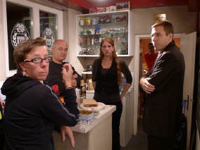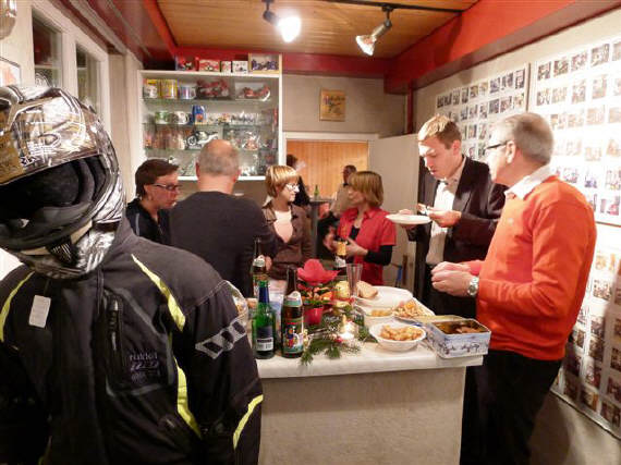 Der Abend verging wie im Flug. Sigrid hatte Kartoffelsalat nach dem Rezept ihrer Mutter zubereitet, welcher zusammen mit heissem Fleischkäse von unserer Hausmetzgerei Lüthi in kleinen Portionen serviert wurde. Das Tannzäpfle-Bier aus dem Schwäbischen fand fleissig Absatz, aber auch alkoholfreies Bier war gefragt. Da zum 6.Dez. normalerweise der Klaus kommt, blieb es bei uns bei der Bescherung: Fleissig knabberten die Gäste frisch von Hand geröstete Erdnüssli aus der Ferrari-Caffee-Rösterei in Dietikon, und Mandarinen aus dem fairen Handel mit Bio-Produkten in Wädenswil. www.sdrüegg.ch. Die Baumnüsse, die von Hand gelesen werden, findest Du unter www.baum-nuss.ch. So, wie in meiner Ausbildung nur das Beste gut genug ist, verwöhnen wir auch gerne unsere Gäste! Die süssen Zutaten lieferte übrigens Lindt&Sprüngli im Fabrikladen in Rüschlikon, wo ich jeden Tag dran vorbei fahre. |