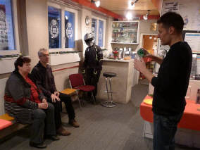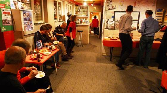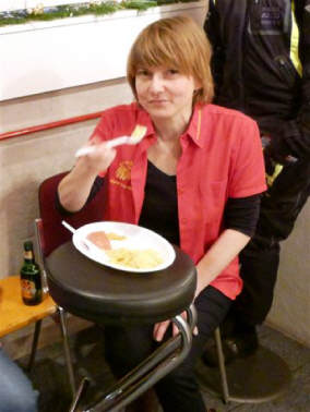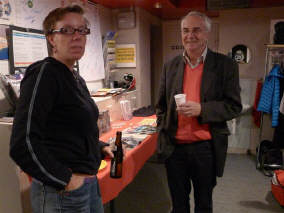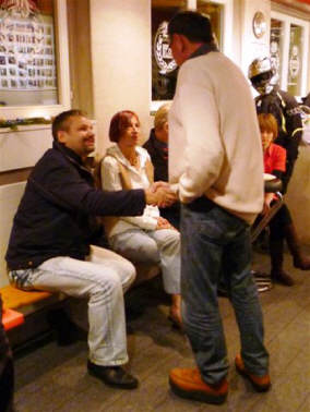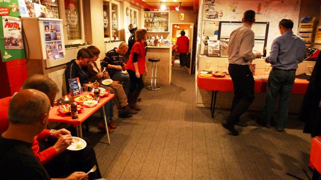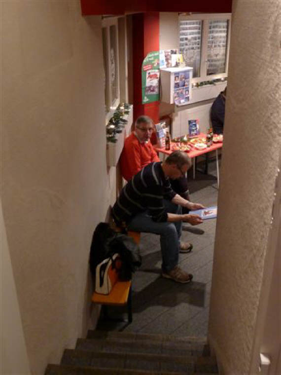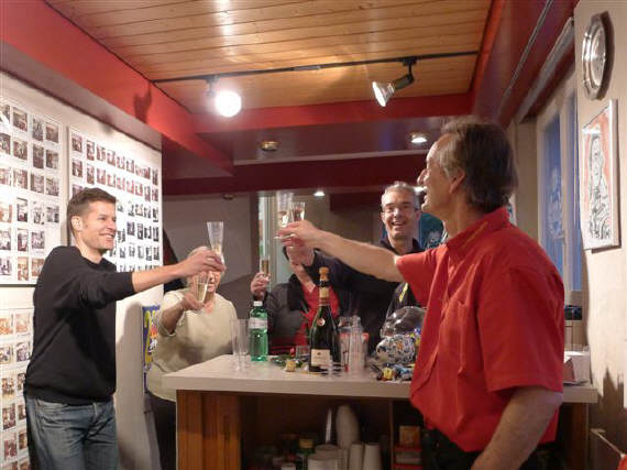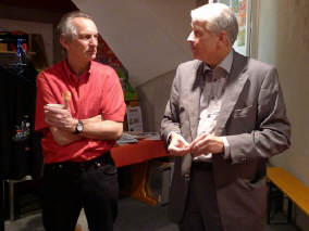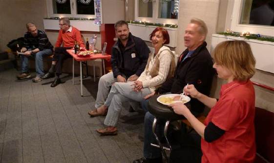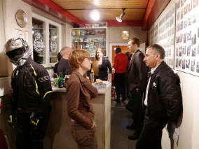 Milly war froh, dass es noch eine Weile ging, bis der grosse Run einsetzte. Sie operierte im Hintergrund und schmückte noch den Raum, während wir uns unterhielten. Dann ging es los: Nach und nach trafen immer mehr Leute ein und es gab ein erfreutes Wiedersehen, wenn es Teilnehmer betraf, die zusammen den gleichen Kurs besucht hatten. Aber auch nach und nach trafen immer mehr der ständigen Teilnehmer, die an den Donnerstagsausfahrten als Tourguide oder als Teilnehmer mitmachen, beim 1.Mai-Rallye zugegen sind oder mithelfen: Kurzum, der Mix, der die Ereignisse und Veranstaltungen an der Tramstrasse so erlebenswert machen.
