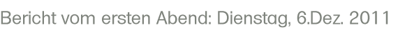 Über den Pfeil oben rechts «Weiter» zum «Bericht vom zweiten Abend: Mittwoch 7.Dez. 2011» |