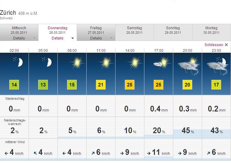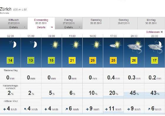 Detail-Prognose Radio DRS Meteo Schweiz |
