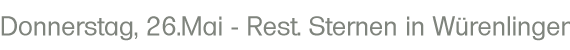Über den Pfeil oben rechts «Weiter» zu «Donnerstag, 19.Mai - Rest. «Freihof», Laupen ZH» (in Arbeit) |