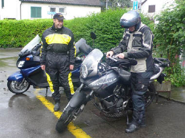 Entgegen der Vorankündigung von meteo.search.ch (siehe unten) hat es an dieser Ausfahrt NUR EIN MAL geregnet: Von Anfang bis zum Schluss! Neben Walter, dem Tourguide, traf noch Dominik und Beat ein. Ich übernahm den Job, die 4er-Gruppe anzuführen. Die Fahrt ging über Gockhausen-Geeren nach Witikon, über die Trichterhausermühle nach Zollikerberg, dann Sennhof und Zumikon, dem Golfplatz entlang nach Ebmatingen und über Maur nach Hinteregg, Egg und direkt in den Pfannenstiel, wo wir bereits um 20 Uhr eintrafen. |