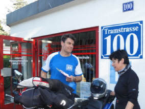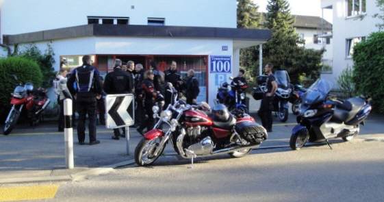 Wir treffen uns wie gewohnt hier an der Tramstrasse. Bitte pünktlich erscheinen, denn beim ersten Mal gibt es ein paar generelle Informationen zur Gruppenausfahrt: Nur wenn man sich an gewisse Regeln hält, auf grossen Strassen versetzt fährt, und damit weniger Platz benötigt, um besser über die Ampeln zu kommen, macht es in der Gruppe Spass. Leider kann ich dieses Jahr nicht dabei sein am kommenden Donnerstag: Wir haben einen Treff zur Vorbereitung des Fahrlehrer-Weiterbildungskurs, den wir am Freitag, 6.Mai in der Ostschweiz erteilen, weshalb ich mein Geschäft bereits um 3 Uhr verlassen werde. In Oliver konnte ich einen Ersatz finden: Er wird alle DO-Ausfahrtsteilnehmer empfangen und nach den Instruktionen dann die Gruppenaufteilung vornehmen. Zur Verfügung stehen neben ihm auch Arthur und Roland Birrer, und mit Dominik Zaugg in Reserve, kann ich einen neuen Tourguide einsetzen, wenn es aufgrund der grossen Anzahl nötig sein würde. |