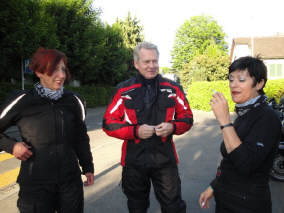 Oliver übernahm den Fall: Ich war bereits um 16 Uhr gestartet, um in Gossau/SG an der Rekognoszierung für einen Fahrlehrer-Weiterbildungskurs teilzunehmen. So musste/durfte ich es ihm überlassen, die ersten Teilmehmer von 2011 zu begrüssen. Zwar waren es nicht ganz so viele wie 2009, aber auch nicht viel weniger! Als Tourguide stand erstmals Roland Birrer, im Einsatz - als ehemaliger Gemeindeschreiber von Flaach war diese Gegend ein Heimspiel! Oliver nahm sich den «L»-Fahrern an und, so wie ich es vernommen habe, leitete Arthur den «Weiberclub»... |