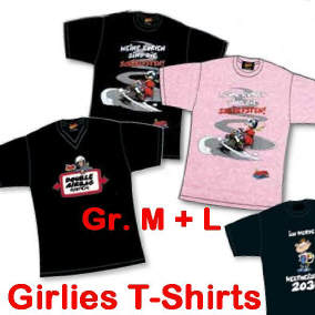NEUHEIT: Wir lancieren auf der Messe das "I love Töff"-T-Shirt! Und zwar aus fairem Handel. Die Organisation 3FREUNDE in Deutschland kontrolliert die ganze Herstellungskette und garantiert mit fairen Bedingungen auf der ganzen Produktionslinie. Man kann das T-Shirt probieren und bestellen, Damen wählen aus zwei Schnitten aus, dann die Herren und die Kinder. Das T-Shirt kostet Fr. 30.-, alle Grössen. Wer bar bezahlt, kommt es kostenlos zugesandt. Wer die Ware mit Einzahlungsschein bezieht, beteiligt sich an den Portokosten.