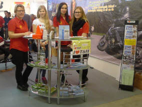 Die diesjährige «SWISS-MOTO» schloss mit einem neuen Besucherrekord ab: 70'517 Besucher strömten zu in dieser Art durchgeführten Zweiradausstellung in ihrer 12.Auflage! Am Samstagmittag war der Besucherandrangh zeitweise so gross, dass man sich in den Gängen kaum mehr bewegen konnte. Auch der Sonntag war sehr gut besucht, da half bestimmt das miese Wetter zusätzlich, welches kaum zu grossen Ausflügen einlud. Bei einem grossen Teil der «motomania»-Artikel waren wir am Schluss ausverkauft, nur bei den Kalendern hatte ich etwas zu optimistisch eingekauft. Zum Schluss wurden wir noch ein paar Exemplare zum Schleuderpreis von 10.-, anstatt den 15.- Franken an der Messe, am Hauptausgang in einer Verkaufsaktion los. Wer also noch einen Kalender brauchen kann (beispielsweise als Geschenk!) kann ihn bei mir für 10 Franken ab jetzt abholen. |