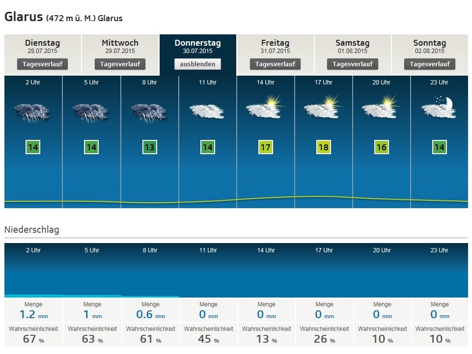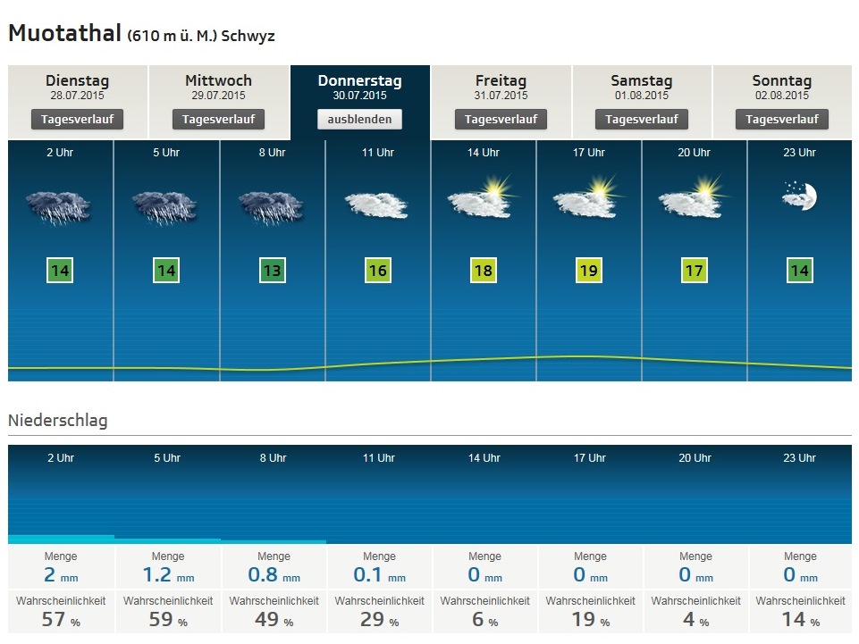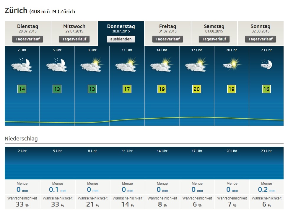Detail-Aussichten ZH für Donnerstag, 30.Juli 2015 |