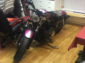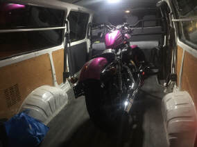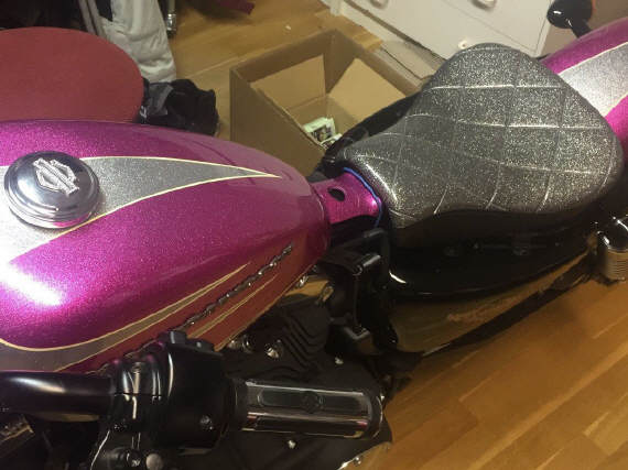 Nicht der Töff ist Pink, auch die Decke, an den Kleidern, die Hausschuhe - Mrs Pink Lady!!!