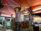 Der heutige Tag verging schnell: Ich musste nochg verschiedenes posten (einkaufen) im Bau& Hobby, damit es wieder weitergehen konnte. Die «Kiste», die den Abschluss bildet zwischen meinem Stand und dem Nachbarn, brauchte viel, viel länger als geplant. Mit Theres hatte ich einige Vorarbeiten geleistet, dann traf ich in meinem Geschäft Gregor und so aus Spass meinte ich zu ihm, Du kommst gerade richtig! Er nahm das aber ernst und war mir ein guter Helfer, auch ein begabter Helfer mit guten Ideen und Sinn fürs Praktische. Nicht umsonst bin ich Lehrer und nicht, wie als Bub geplant, Automechaniker geworden ... Es war halb 8 Uhr als wir aufbrachen. Morgen kommt der Finish, dafür sind drei Frauen aufgeboten ;-) |