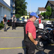 Da ich keine Fahrschüler hatte am Nachmittag, ging ich zu Fuss an die Tramstrasse 109 und versorgte die Anewesenden mit Getränken. Immerhin war es in der Stadt gegen 30 Grad an diesem Sommertag. Aufgrund der drei anwesenden Tourguides formten wir drei Gruppen: Arthur übernahm drei der Teilnehmer, Alain und Roman starteten je mit 2 Teilnehmern. Sie hatten die Aufgabe, um 20 Uhr bei der Grillstelle aufzukreuzen.