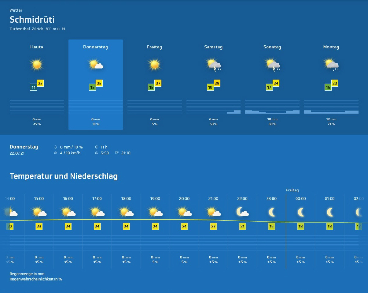 Züri-Wätter für Donnerstag, 22.Juli 2021 |
