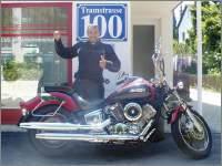 Wir schreiben Samstag, den 16.Nov. 2013. Bernhard hat sich angekündigt, bei mir noch sein Siegerbildchen zu machen. Auf die Frage, ob er noch etwas Zeit hätte, bejahte er und so kam es, dass er mir half, die XVS 1100 Drag Star ins Winterquartier zu Thomas Matusik in Mettlenhasli zu bringen. Ab Seebach liess ich Bernhard die grosse Chopper fahren. Da er erst gerade die Prüfung absolviert hatte, sass er zum ersten Mal auf einer solch schweren Maschine und bereits beim Abbiegen an der Ampel hörte ich hinter mir ein Kratzen … – wie ich, ist Bernhard sich gewohnt, mit mehr Schräglage in die Kurven zu gehen, auch bei nur 6 Grad Aussentemperatur doch ein bisschen tiefer, als es mit der Drag Star möchlich ist! Mehr dazu: Klicke aufs Bild! |