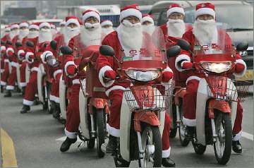 Ich kann mich erinnern, dass immer wieder Bilder vor und nach Weihnachten durch die Medien ging von einem Tross Harley-Maschinen mit Samichläusen: Ob dies nun wohl die Version ist für die «Zeit nach der Finanzkrise»?