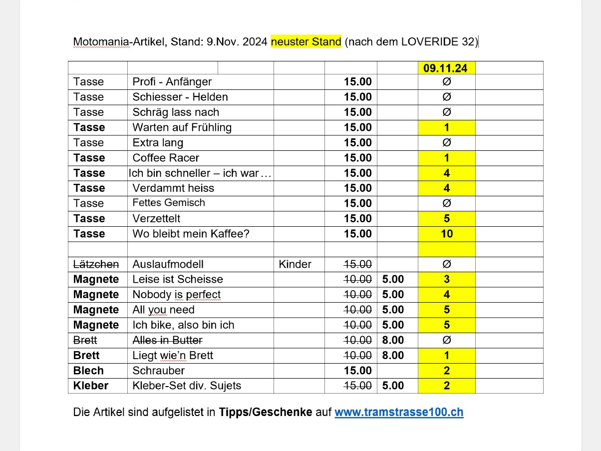 Über Pfeil oben rechts «Weiter» zu «Alle «motomania-T-Shirts»: Stand Nov. 2024» |